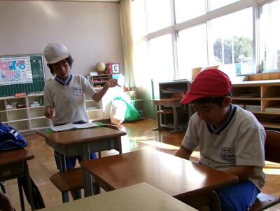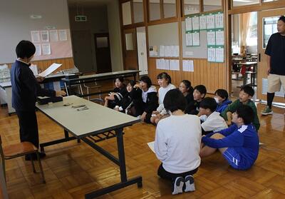 昼休みの学習室には3年生が集まって、明日の遠足のためのリーダー会議をしていました。