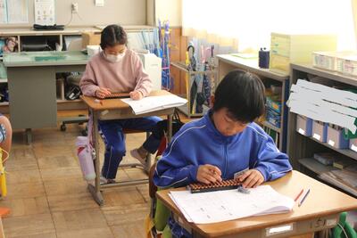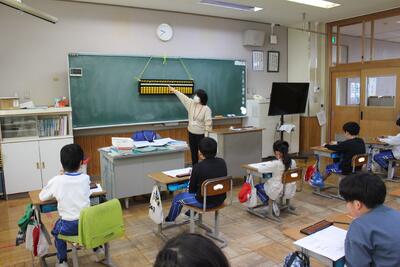 3・4年生が算数の授業で、栃木県珠算ボランティア協会 見目計算実務学校から講師の先生をお招きし、そろばんの使い方を学習しました。