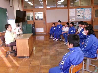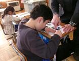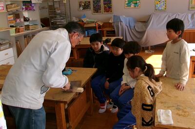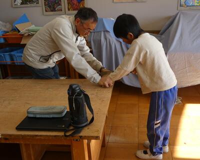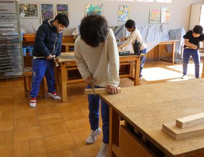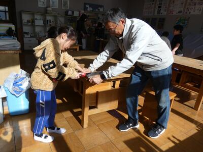 3年生が、図工の授業でのこぎりの使い方を学びました。特別に、本校の公仕さんから、のこぎりの安全な使い方を教えていただきました。
