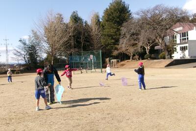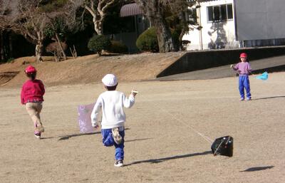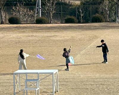悪戦苦闘(!?)でしたが、広い校庭で元気いっぱい、たこあげを楽しみました。😄