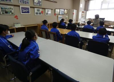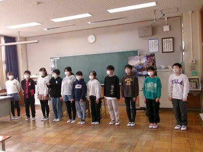 昼休みに、5・6年生の学年発表がありました。