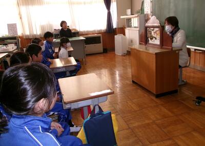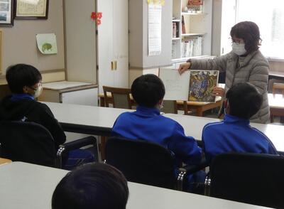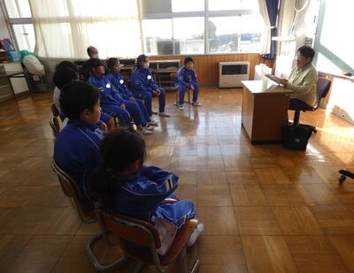 今日の朝の活動は、野の花の会の皆さんによる読み聞かせでした。