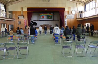 5校時に1~5年生全員で、卒業式の式場準備を行いました。