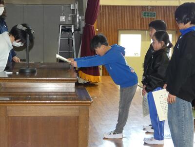 代表者が修了証書と記念品を受け取りました。