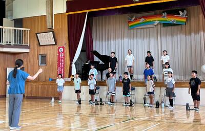 4年生以上の児童が合唱の練習に励んでいます。今日は体育館での練習でした。
