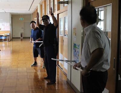 本日、3校時に不審者侵入対応避難訓練を行いました。訓練では、大田原警察署 地域課 小滝駐在所の署員様とスクールサポーター様の御協力をいただきました。