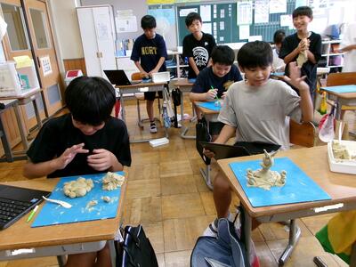 5・6年生は図工の授業。次々と面白い作品が出来上がっていました。