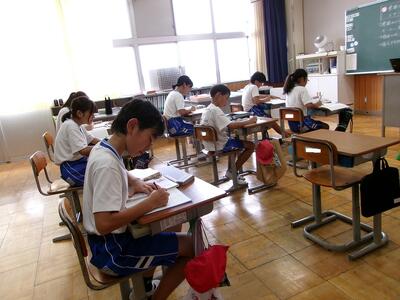 3・4年生、5校時はテストでした。みんな、真剣です。