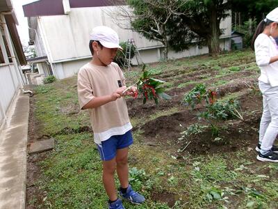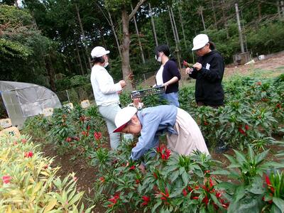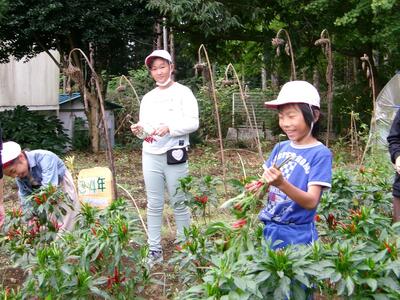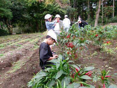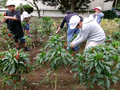 1校時に、3・4年生が唐辛子の収穫作業を行いました。今年は、夏休み中も地域の農園ボランティアさんの御協力をいただいて丁寧に世話をしてきました。そのおかげで、昨年度よりもたくさん収穫できたようです。
