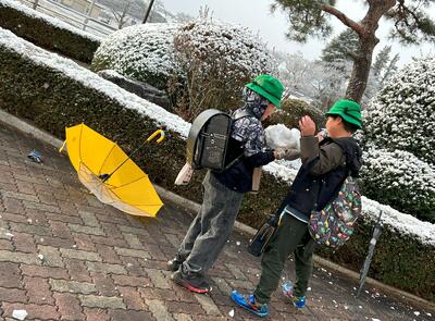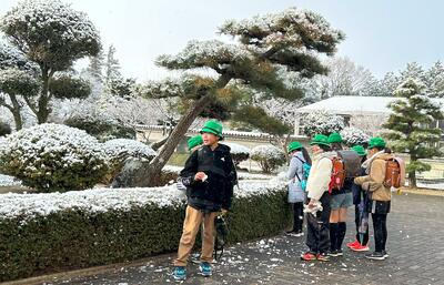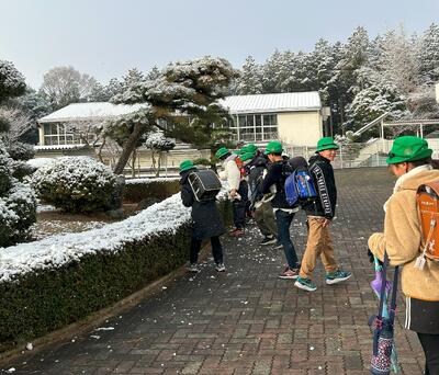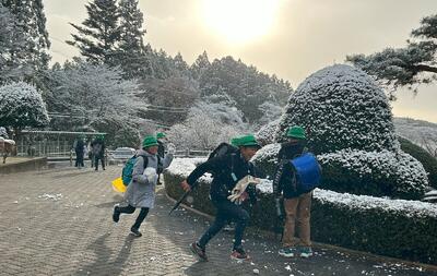 今朝は雪が少しだけ積もりました。❄️登校した子供たちは、早速雪遊び。