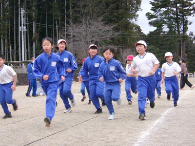 今日の午前中は曇り空でしたが、全校児童によるタイムトライアルが行われました。