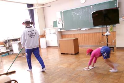 日頃お世話になっている校舎に感謝しながら、27人が力を合わせて、学校をピカピカに磨きます。