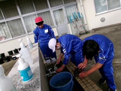 水槽をきれいに 投稿: 管理者 (15:35) 本校のミヤコタナゴの世話は、5年生が担当しています。今日は、昼休みを使って水槽の掃除をしました。 水の冷たさに耐え、ミヤコタナゴのために頑張りました! Tweet -