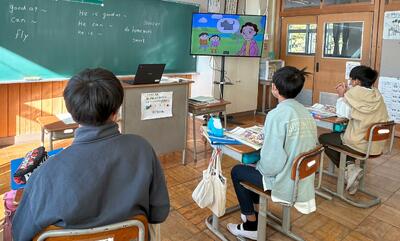 5年生は外国語。登場人物達の会話(もちろん英語)を聴いて内容をつかむ学習です。