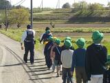 通学路の状況を子どもたちが自分の目で見て、危険箇所等を確認することと、「あんしん家」へのごあいさつを行いました。