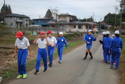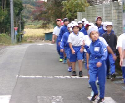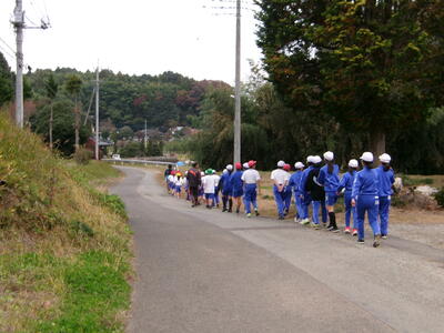 3校時の全校体育の時間に、1~6年生全員で、マラソン大会のコースを歩いて確認しました。