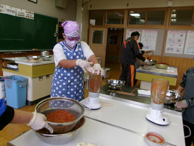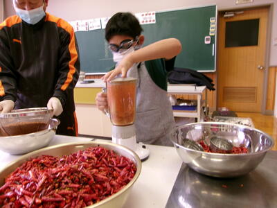 3・4年生が、5・6校時に七味唐辛子作りをしました。大田原とうがらしの郷づくり推進協議会の方をお迎えし、御指導いただきました。