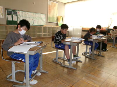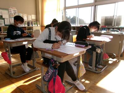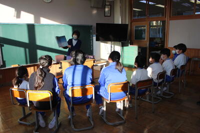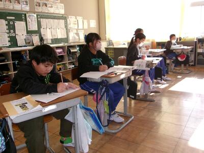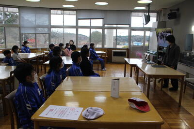 5・6年生、落ち着いて、冬休みの生活や学習について確認中です。