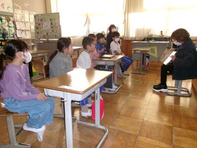 今日の朝の活動は、野の花の会の皆さんによる読み聞かせでした。