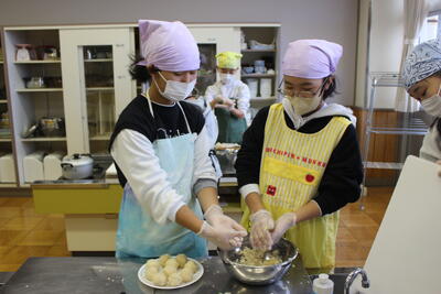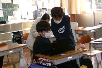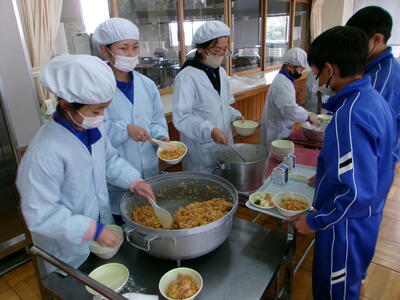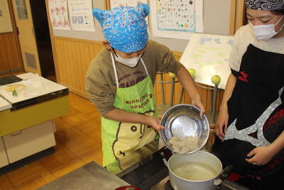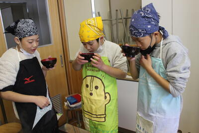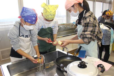 5・6年生が家庭科の授業で調理実習に取り組みました。5年生がごはんとみそ汁、6年生がおかず担当。11人が力を合わせて頑張りました。