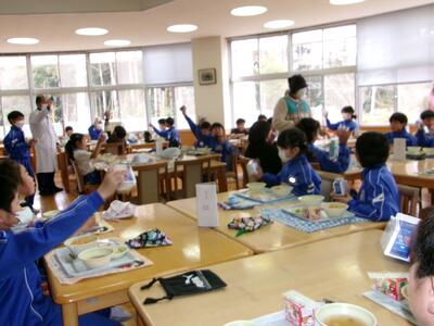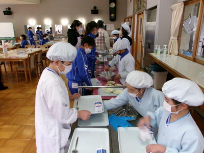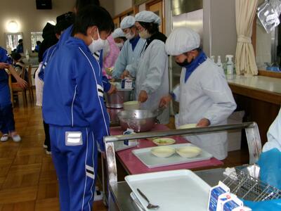 今日の給食は、クリスマス・メニュー。子供たちの大好きなものばかりが並び、さらにクリスマス・デザート(8種類の中から好きなものを選びました。)付きという楽しみな献立でした。