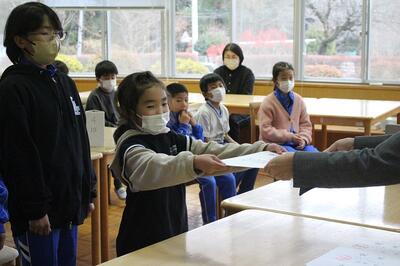 校長の話の後、各学年の代表者が意見発表を行いました。