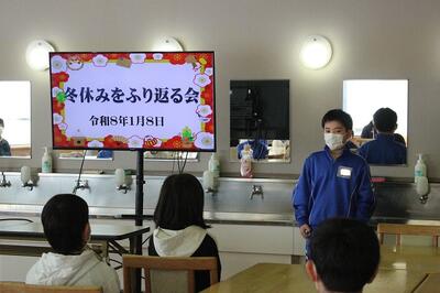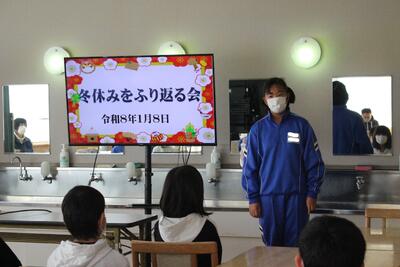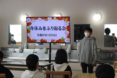 今日は、朝の活動の時間に「冬休みを振り返る会」を行いました。